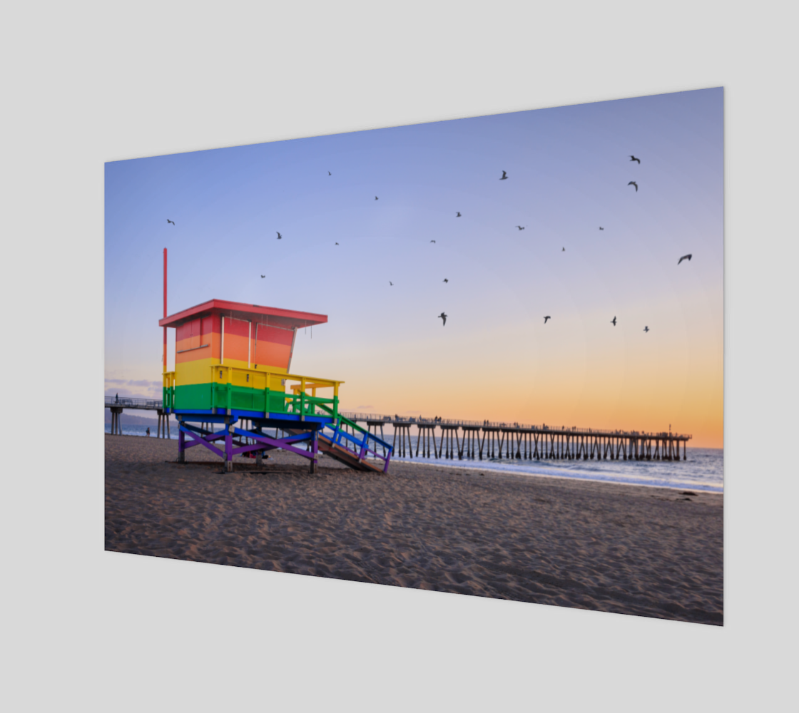 Hermosa Rainbow is a perfect slice of ocean air at sunset—complete with a flutter of seagulls doing their thing overhead. This rainbow-painted lifeguard tower in Hermosa Beach was originally captured for Natasha Boyd at Rainbow Midwifery, and it carries a spirit of optimism and inclusivity. I’m offering it as an open edition print for anyone who wants a piece of laid-back California magic on their wall—minus the seagull flybys.
